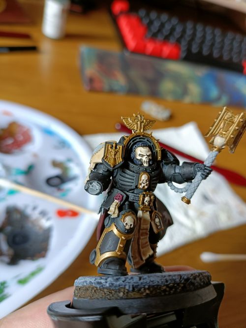 - Weapon (Crozius/Mace): Army Painter Speedpaint Hoplite Gold, Army Painter Speedpaint Slaughter Red, Skull as per other skulls on model